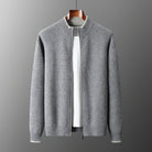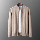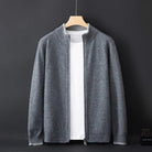Crafted from 100% premium cashmere, this zip-up jacket offers unmatched softness and warmth. The luxurious cashmere feels incredibly gentle on the skin, while the fine-knit detailing at the collar and cuffs adds a refined touch to its minimalist design.
