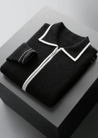 WOOL TWO-TONE POLO CARDIGAN
