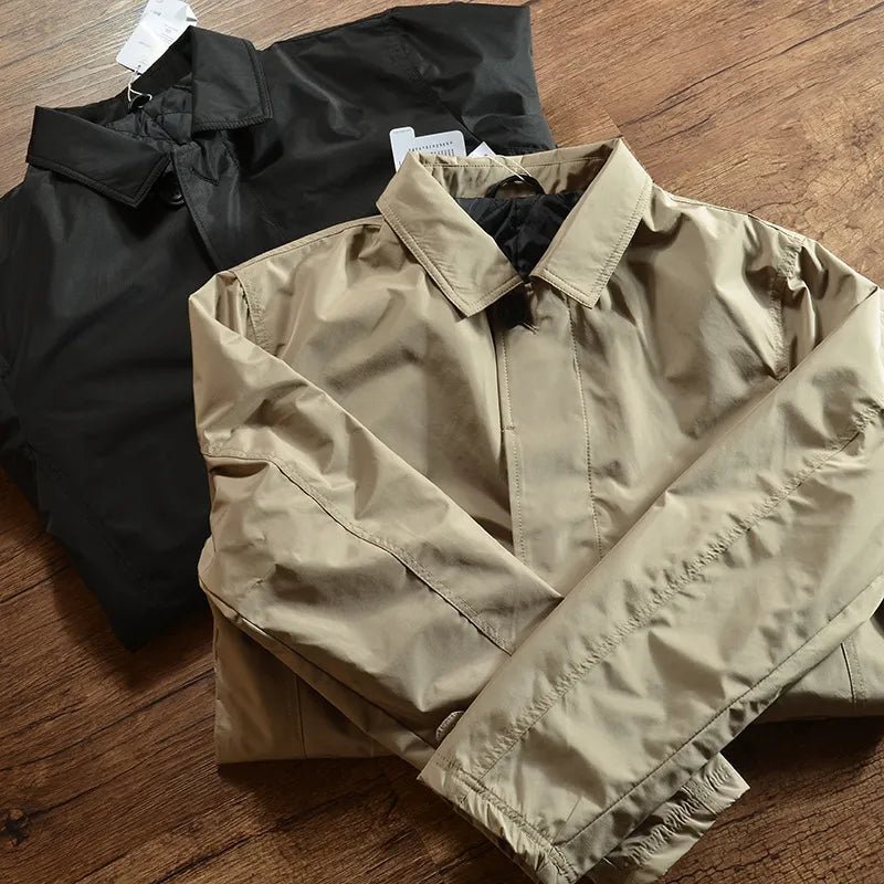 Lightweight, water-resistant urban coat with minimalist European design and quilted interior for comfort and everyday elegance.